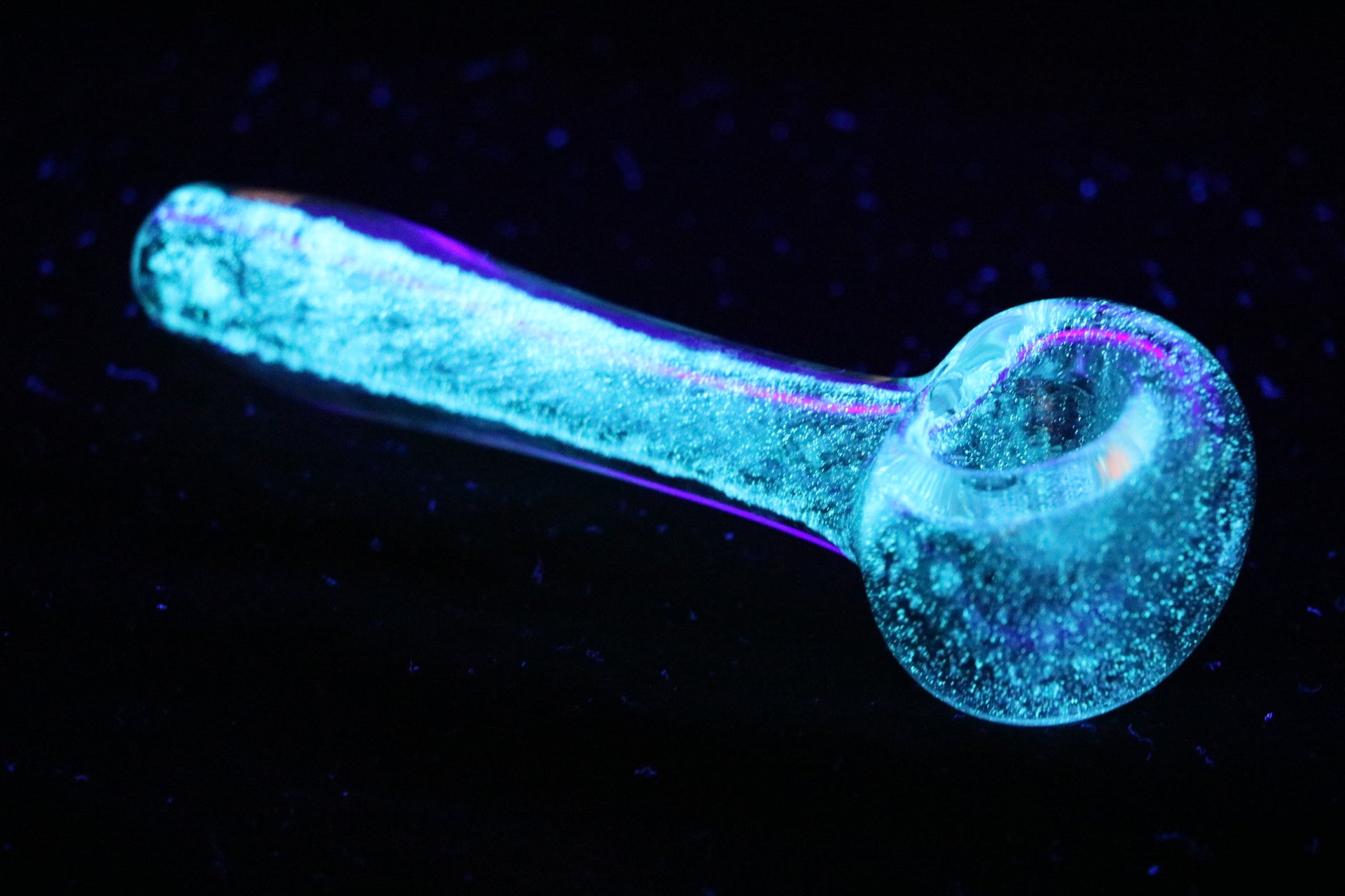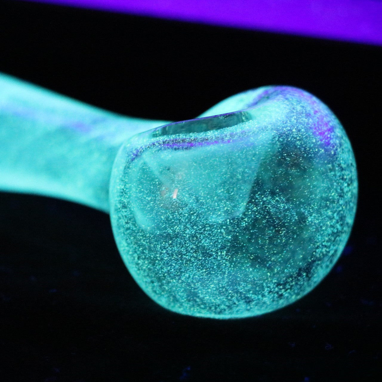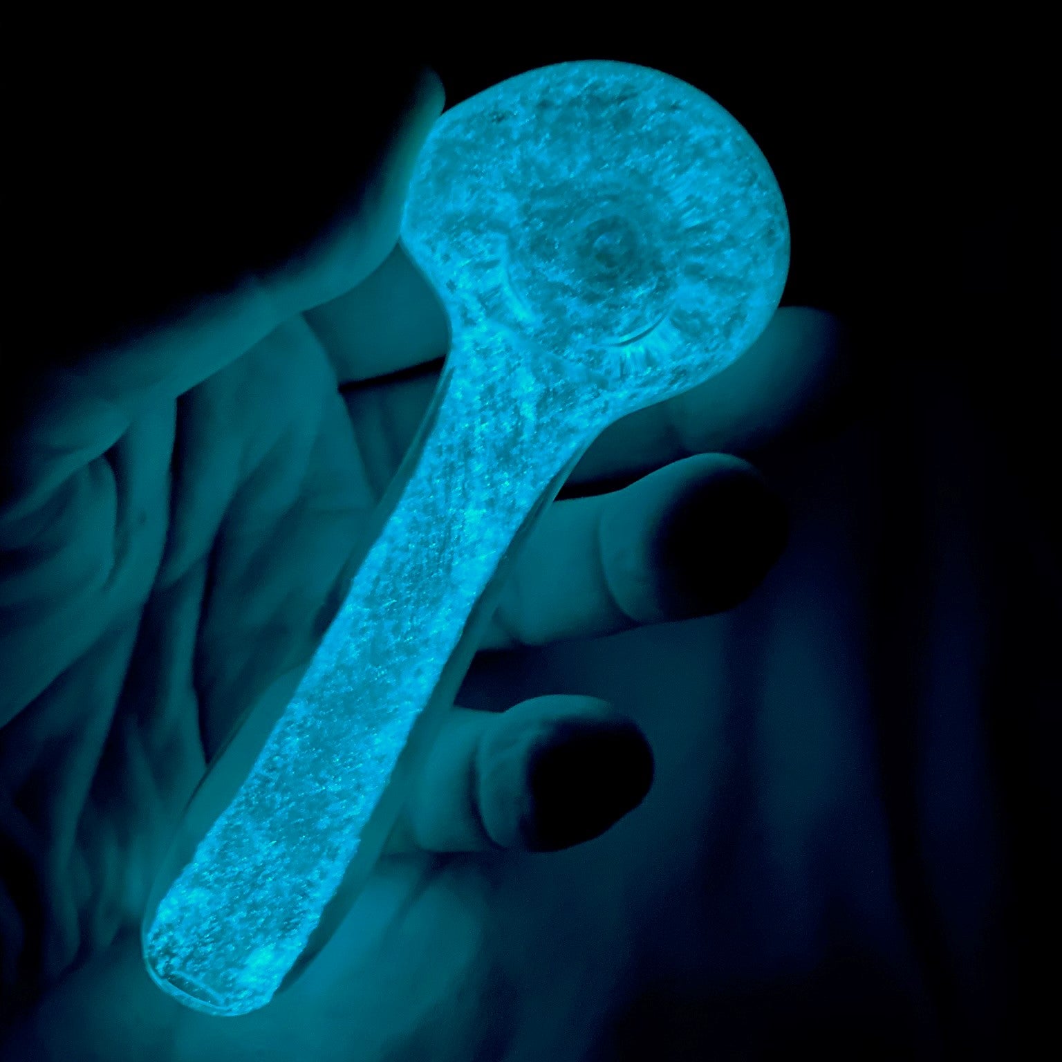 Large glow‑in‑the‑dark frost pipe. BoroGlow™ glass. Varies 4–5 inches.
